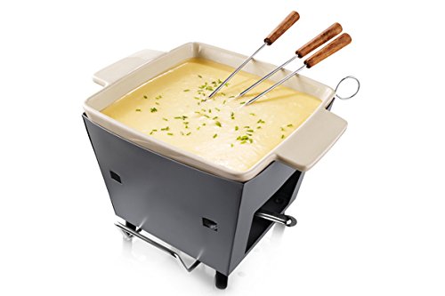 Outdoor cooking gets a new dimension with this outdoor cheese fondue set. In the garden during a picnic, with this cheese fondue you can also you in the nature of your cheese fondue. The gray steel frame protects the fondue burner from the wind. Combines well with baguette, celery or broccoli. Outside cheese Fondue: now possible with this outdoor fondue pan for four people. Preferably with this pan with 1.8 liters. Including flame tamers and fondue burner. The outdoor Life fondue consists of a steel frame on plastic feet and has stable handles made of stainless steel. Four stainless steel fondue forks with mahogany wood handles are of course included. Comfortably outside or for grilling. , This product is ideal for enjoying cheese fondue , Refrigerator safe , Freezer safe , For up to 4 persons , Volume: 1,8 L , Material: Earthenware, stainless steel, plastic, mahogany Size: Length: 285 mm Width: 220 mm Height: 234 mm Set contains: 1 Fondue Pot 1 Flame Diffuser 1 Fondue Burner 1 Base Boska article number: 853536 , Pack contains:1 Boska Fondue Pot 1 Boska Flame Diffuser 1 Boska Fondue Burner 1 Boska Frame 4 Boska Fondue Forks Read more details..