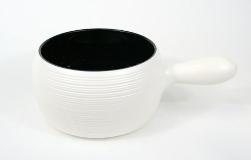 House brand White / Inside Black glaze caquelon. Specifications: 2.5L 24cm diameter and 8 cm high Charmotte ceramic Fire and flame resistant White / Black Glaze inside This fondue pan is suitable for: Cheese fondue Meat fondue/ Broth fondue Oil fondue Chocolate fondue Read more details..