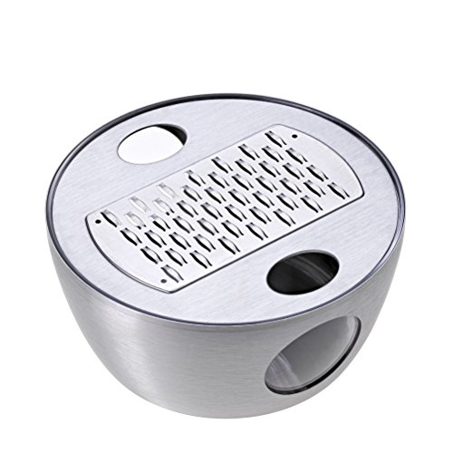 Ultra-sharp RazorTech bladesTransparent plastic bowl framed in a high quality stainless steel case collects the grated parmesanLateral openings allow checking the amount of grated cheeseMade of 18/10 stainless steelWith lid for storage