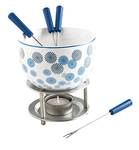 Go ahead and indulge yourself with this gorgeous colourful Chocolate Fondue Set from Mastrad. Simply pour melted chocolate into the fondue bowl, the candle will ensure that the chocolate stays warm. Use the fondue forks to dip fresh fruits, marshmallows, sweets, cakes, dried fruit, brioche, etc. into the chocolate. Also works well with cheese. Set comprises: Fondue Bowl, Metal Stand, 4 Fondue Forks, Tealight Candle. Bowl measures approximately 11.5cm diameter, 7.5cm high. Bowl Capacity 400ml. Made from ceramic and stainless steel. Bowl and forks are dishwasher safe. Presented in an attractive box, this would make an ideal gift Read more details..